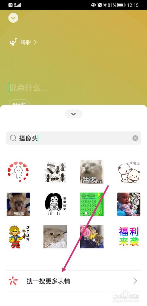 在搜刮栏输入“摄像头”,点击“搜一搜更多脸色”;