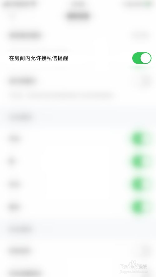 “在房间内许可接私信提醒”后面的圆点变为绿色即暗示开启赫兹在房间内许可接私信提醒当作功