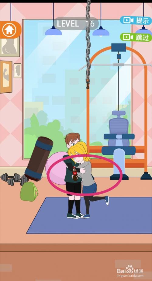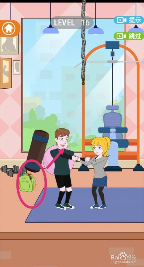 沙袋荡过来后,就会砸中女生的头,拆散情侣当作功游戏过关。