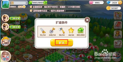 可以看到今朝扩地东西、品级值和美化值都知足扩建前提;