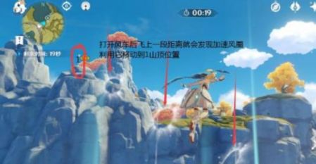 遗迹宝藏2:需要1个风元素脚色,对话后开启限时挑战,要求60秒爬上奥藏山顶,神瞳满级的可以直接飞曩昔爬,若是掉败的话可以看下面方式。