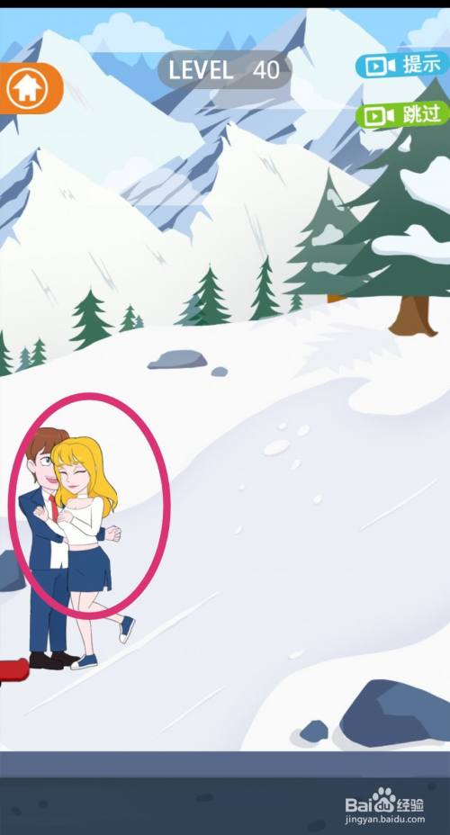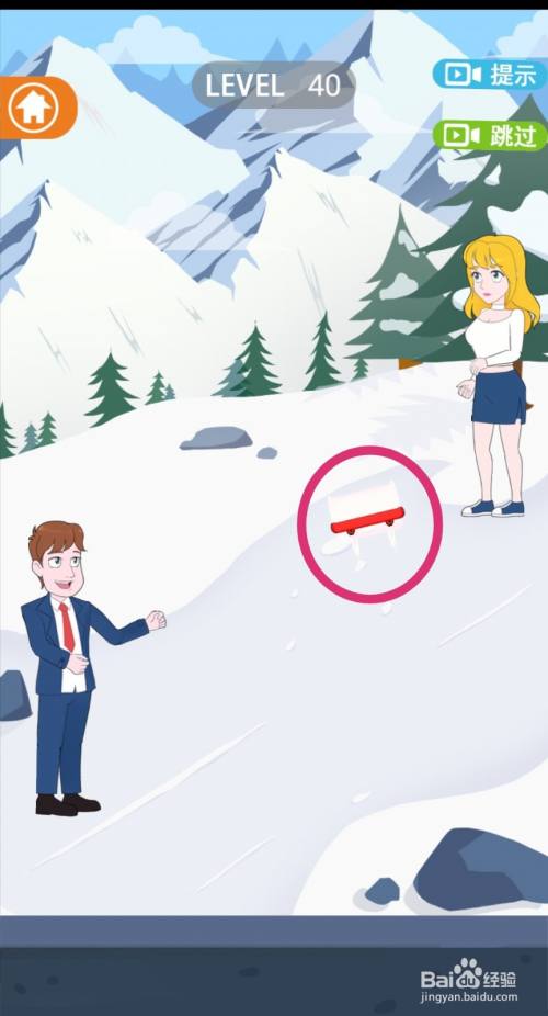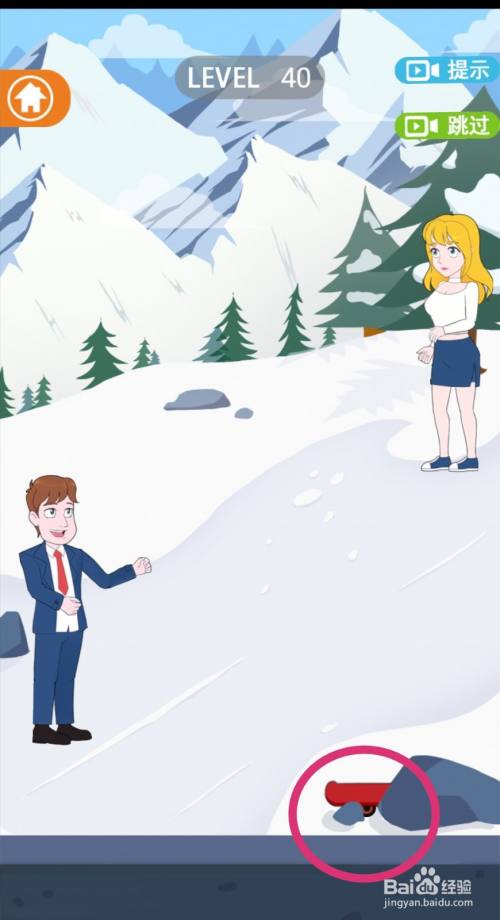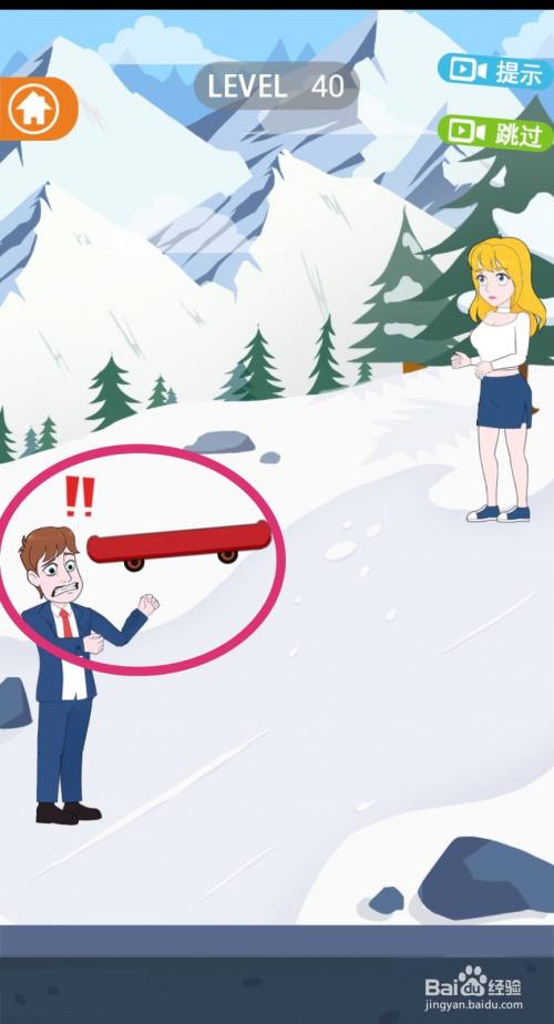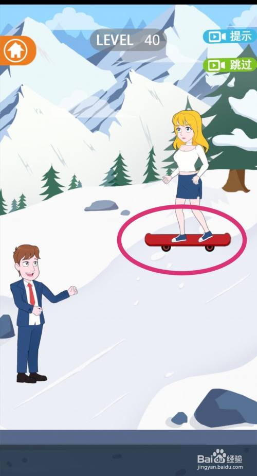 点击拖动【滑板】放到女生脚下,女生就会踩着滑板滑下来。
