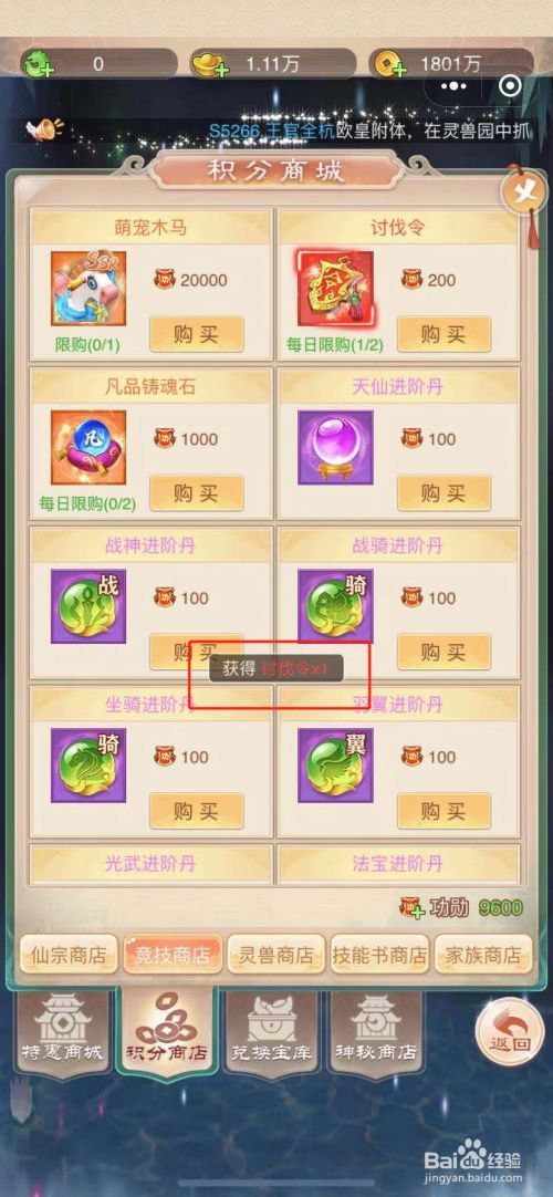 最后,点击“采办”之后,就已经当作功获得了伐罪令了。