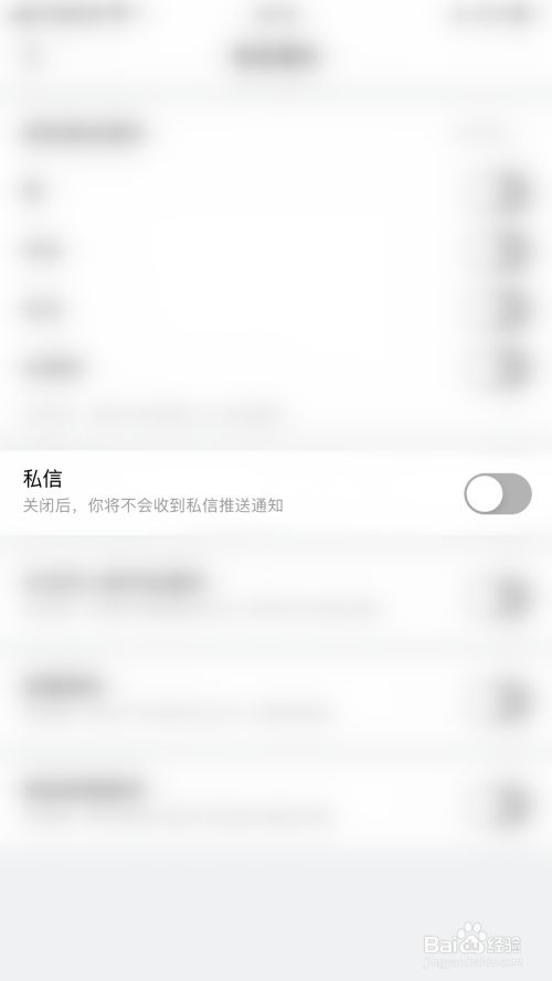 推送通知设置界面点击“私信”后面的圆点