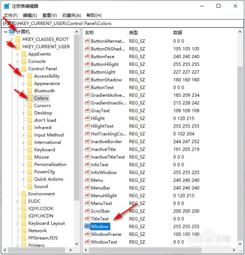 依次睁开“计较机\HKEY_CURRENT_USER\Control Panel\Colors选项。