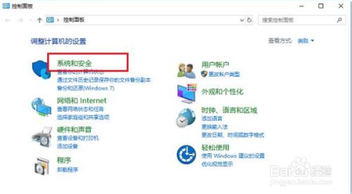 打开win10系统的节制面板,选择系统和平安选项,进入下一步。