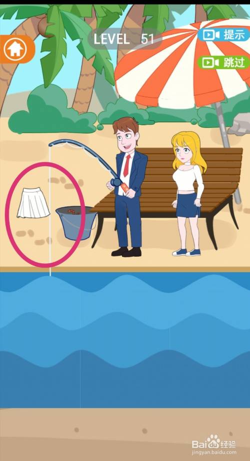 点击拖动【百褶裙】挂到鱼竿的鱼钩上。