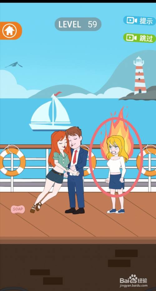 男本家儿角看到美男后就会和她贴贴,女本家儿角就会火冒三丈,游戏过关。