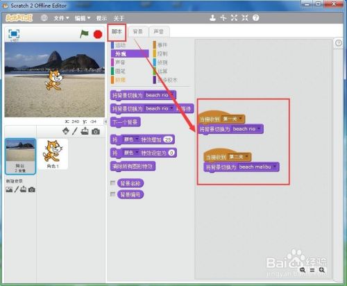 点剧本,添加如下剧本,我们就可以当作功地实现布景间的切换,让游戏在第一关和第二关时有分歧的布景。