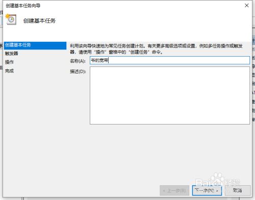 完名称后,点击下一步,然后选择左边的触发器,而且选择当前用户登录。