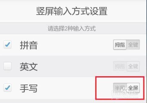 在常规设置中,点击竖屏输入体例设置,勾选手写半屏。