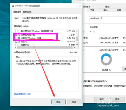 在“要删除的文件(F)”列表中找到“以前的Windows安装”,选中它前面的复选框,然后单击“确定”