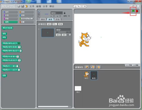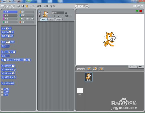1、打开scratch1.4,进入其本家儿界面;