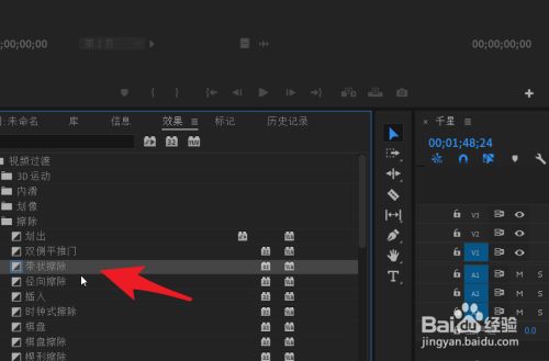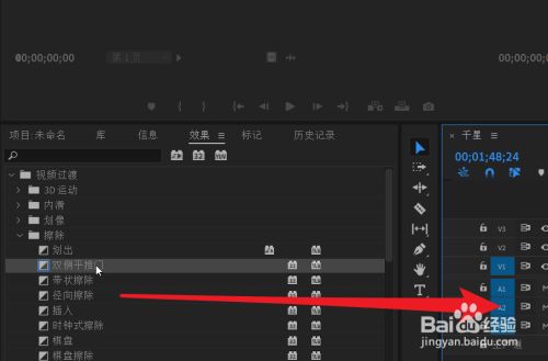 视频导入时候轴后在结果面板中选择一条目视频或音频过渡结果。