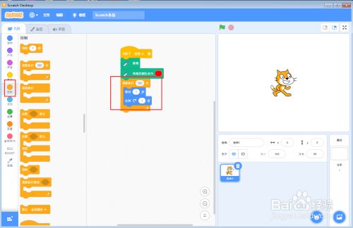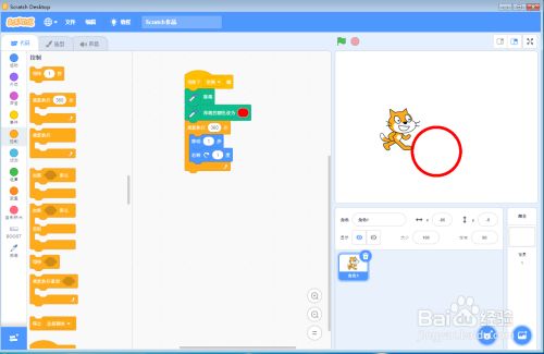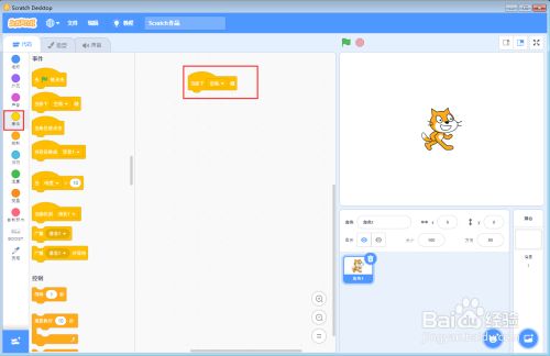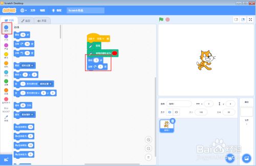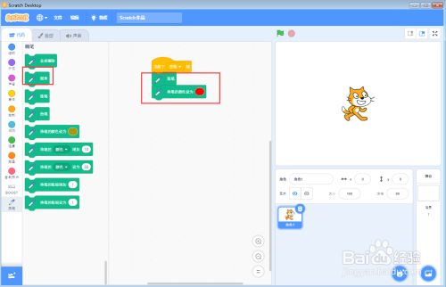 点击画笔,添加落笔、将笔的颜色设为红色号令;