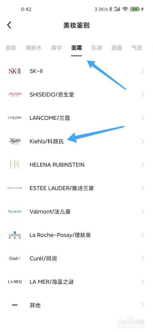 接着选择面霜,点击科颜氏.