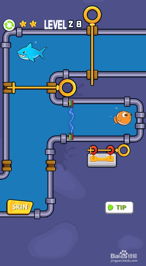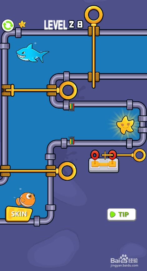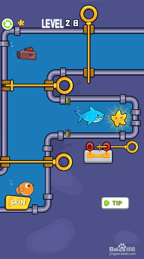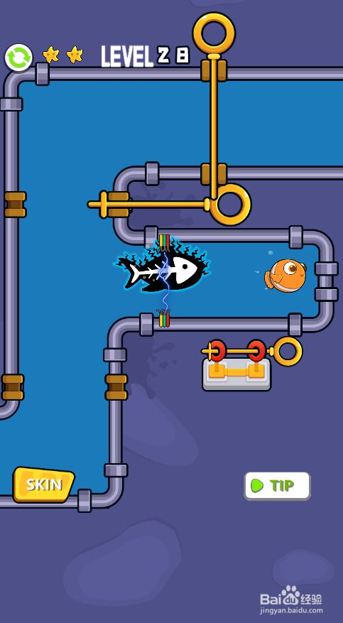 然后打开小丑鱼右侧的插销,获得星星,如图。