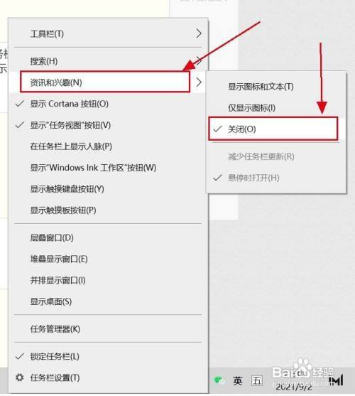 封闭wifi后,使命栏可以恢复利用。此时在使命栏空白处右击,选择“资讯和乐趣”,在二级菜单中选择“封闭”,如下图: