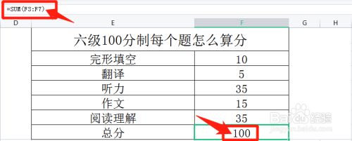 第六步在【总分】后面输入乞降公式并算出总成就就可以了