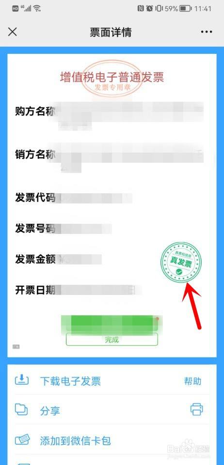 进入票面详情界面,即可查询到发票真伪