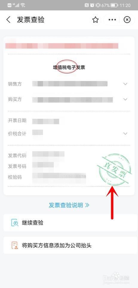 扫描发票左上角的二维码,即可查询到发票真伪