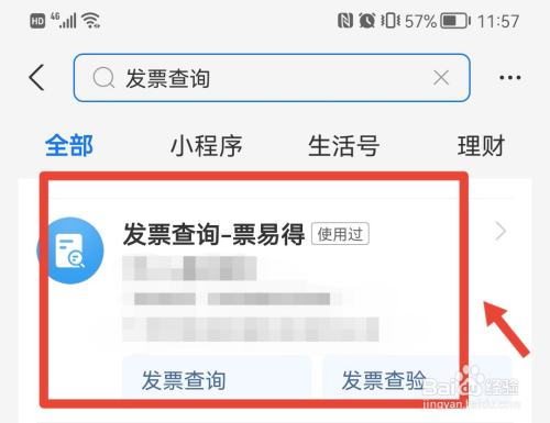 打开支付宝,搜刮并打开诺诺发票检验