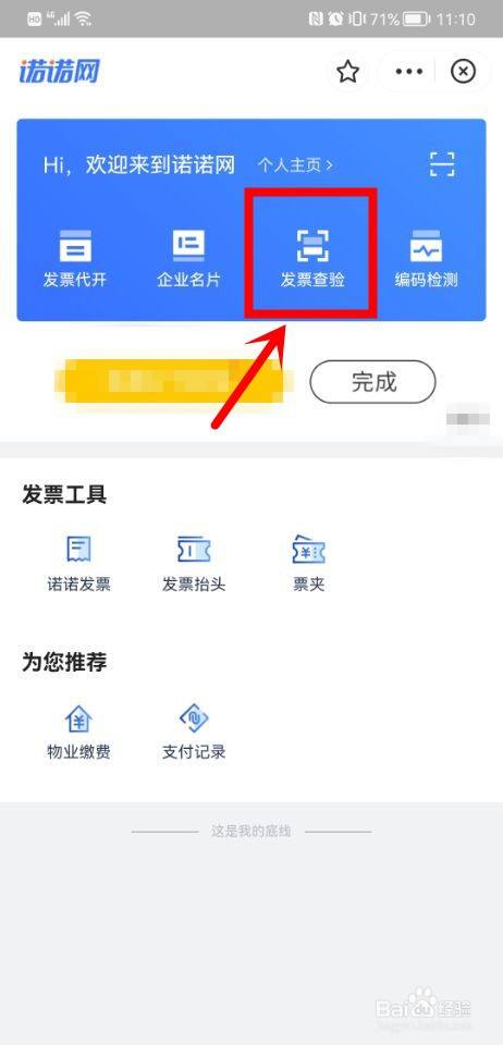 进入诺诺网小程序,点击发票检验
