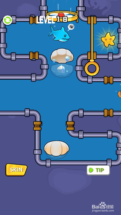 然后打开小丑鱼右侧的插销,鲨鱼被珍珠蚌吞下,如图。