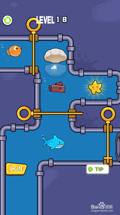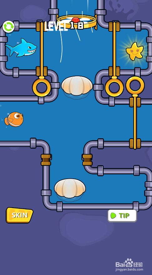 接着打开红鱼下侧的插销,红鱼被鲨鱼吃失落,如图。