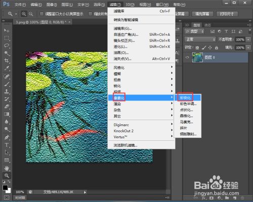 点击滤镜菜单,选择像素化下的彩块化;