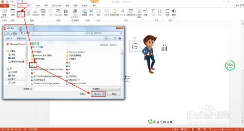 插入——图片——选择两张卡通图片——插入,卡通图一张是侧面,一张是正面——把前后摆布的字放置到响应人物的侧边。