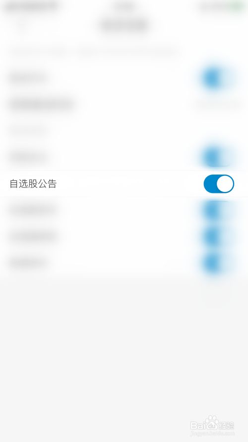 推送设置界面点击“自选股通知布告”后面的圆点