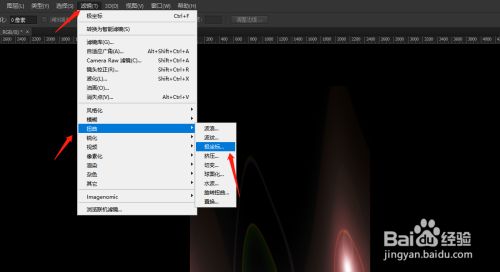 滤镜——扭曲——极坐标,在窗口中选择第二个选项,点击确定。