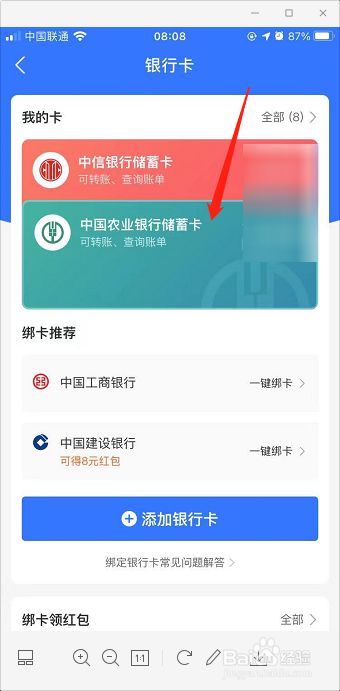 在银行卡界面,选择已经绑定的银行卡。