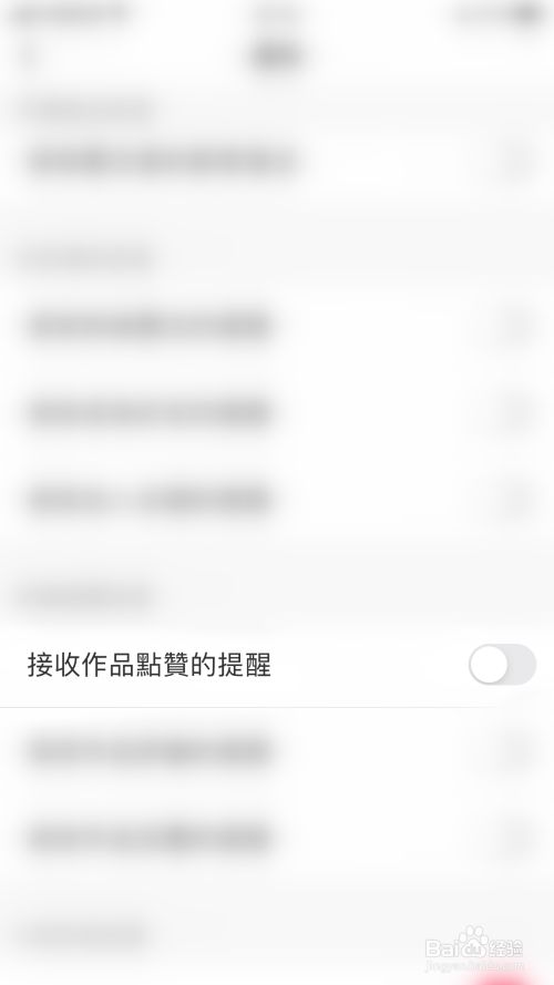 讯息通知设置界面点击“接收作品点赞的提醒”后面的圆点