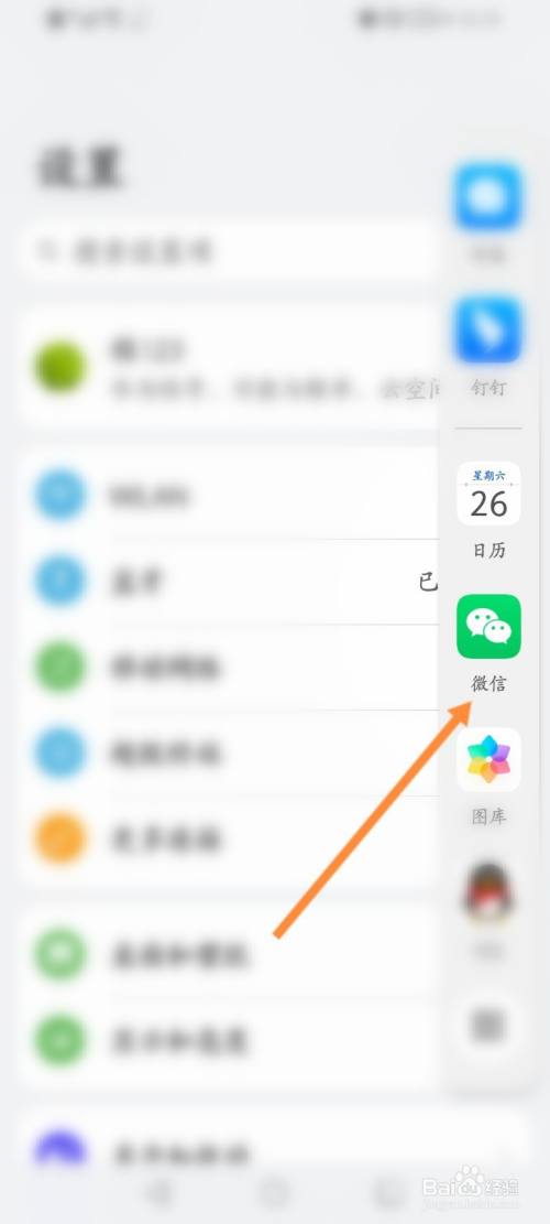 拉出侧边图标,点击微信。