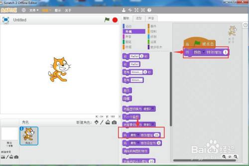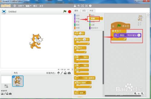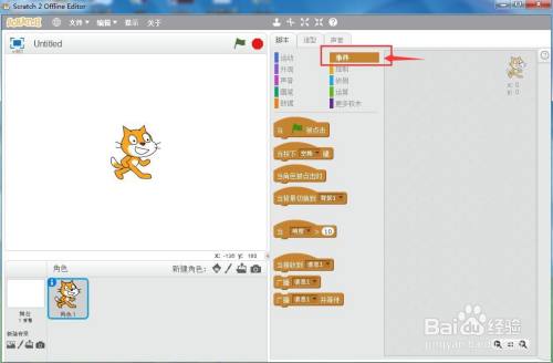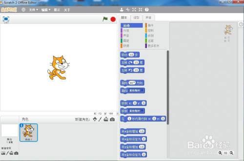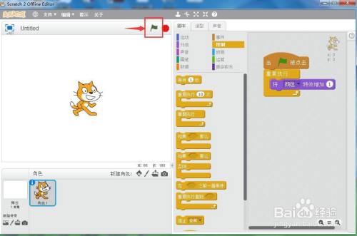 1、打开scratch2.0,添加当绿旗被点击号令;