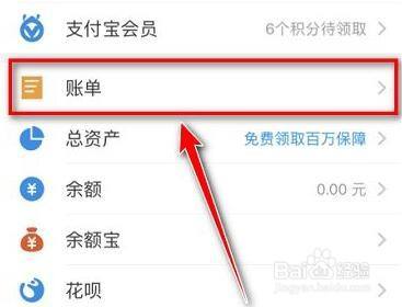 进入“我”,打开“账单”(如图所示)。