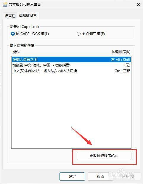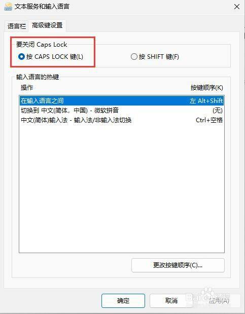 06.这时就会打开文本办事和输入说话窗口,在窗口中点击【高级键设置】选项卡。在打开的高级键设置窗口中,就可以看到是不是切换巨细写的按键改当作了shift键。那么请改归去,这样大写指示灯亮着的时辰就可以按CapsLock键封闭酿成小写啦。