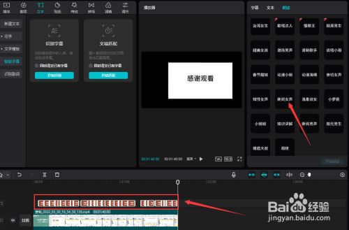 此时,将会主动将对应的音频进行分手,我们选中轨道中的音频切换到文本选项卡,点击起头识别按钮,只是将主动生当作对应的字幕文件。