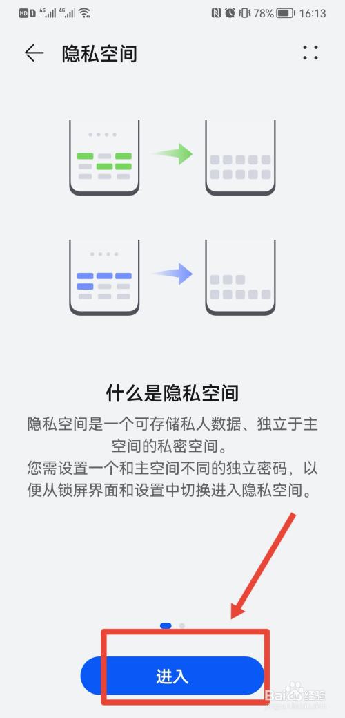 在手机兼顾界面,经由过程设置密码进入隐私空间。