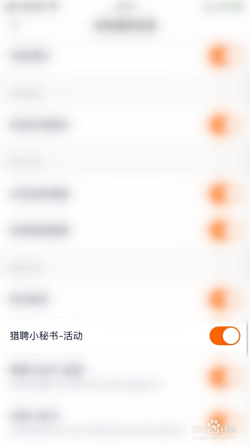 “猎聘小秘书-活动”后面的圆点变为橙色即暗示开启猎聘小秘书-活动当作功