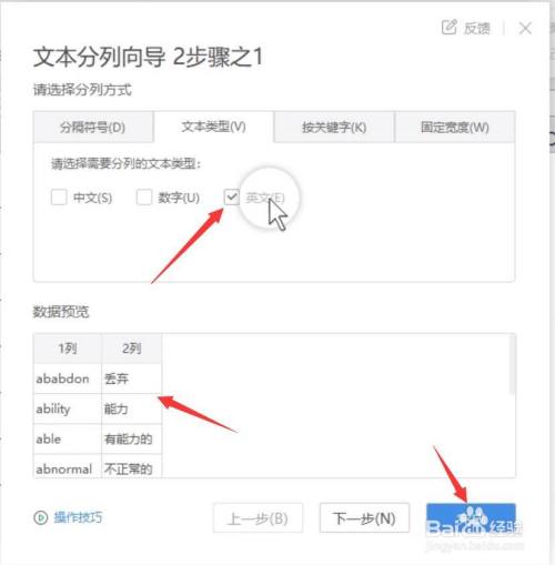 在如图所示的设置界面中,我们切换到文本类型选项卡,此次我们勾选英文,从而实现中英文的分手操作。