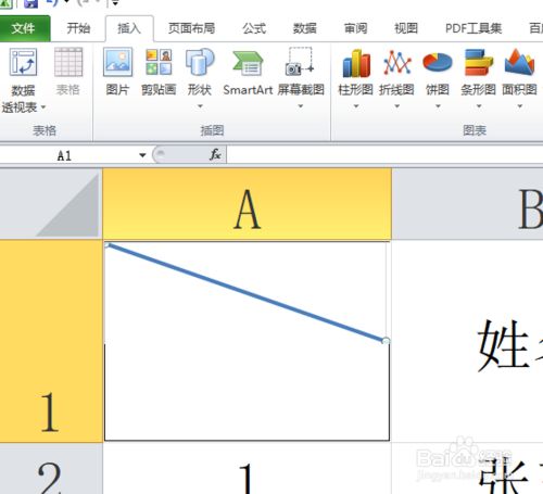 按如图所示,绘制一条斜线,若是我们想要绘制双斜线表头,则再次利用直线东西进行绘制。