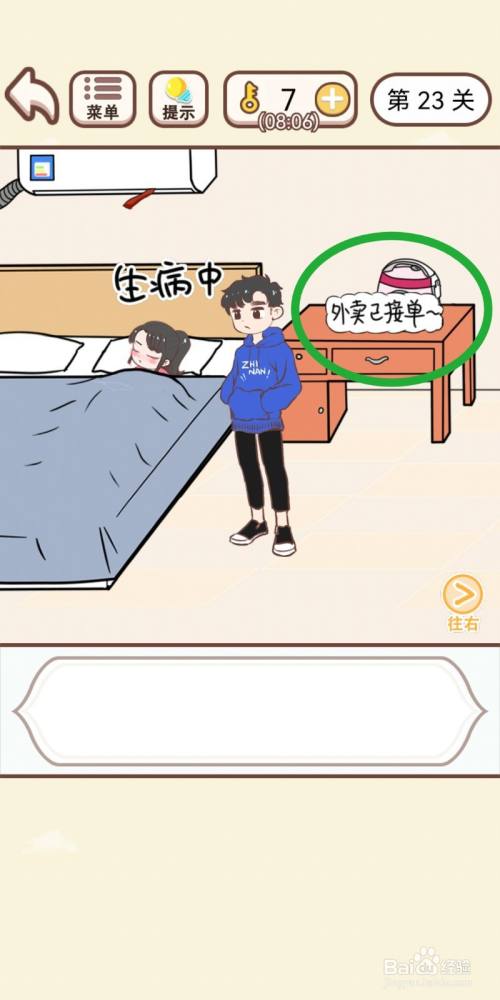 点击抽屉里的【手机】,就可以用手机给生病的女生订外卖。