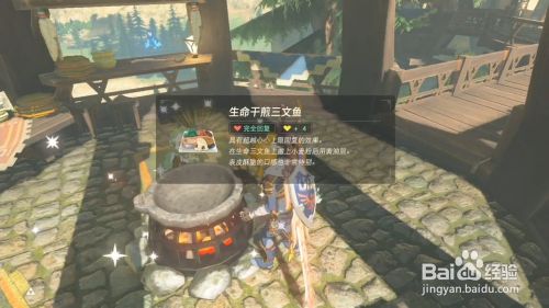 之后回到触发把获得的材料放进锅里就可以建造出生命干煎三文鱼