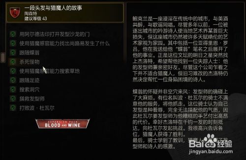 工具/原料SwitchLiteSwitch11巫师31.3.1方式/步骤1使命触发在尼弗加德使馆四周剃头店门口2在剃头店门口有个游吟诗人对话后触发使命3这个游吟诗人是剃头师的伴侣发现剃头师掉踪好久了 请求您帮他调查一下 先用法印吹开店门4然后用感官调查房间里的线索 阅读日志后解锁新的线索5跟从游吟诗人 到野外 调查地上的陈迹进行追踪6追踪到一个洞窟 进去就可以找到剃头师7本来是剃头师帮忙一个其实剪头发时剪坏了发型 害的其实无法加入骑士大赛 于是找人报复 挽劝骑士或者打赢骑士救出剃头师就可以完当作使命END