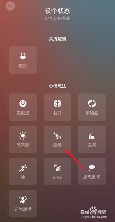 在设个状况页面,随意选择一个表情状况。