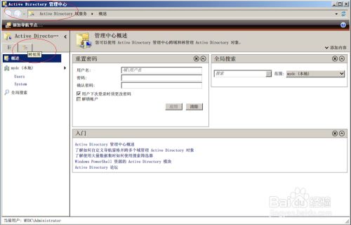 选择"办理东西→Active Directory办理中间"项
