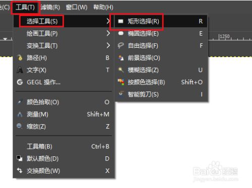 点击“东西>选择东西>矩形选择”。